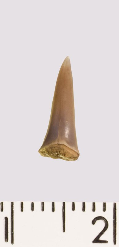 Зуб (фрагмент). Акула. Eostriatolamia venusta Leriche, 1906. Классификация: Хордовые Chordata, Позвоночные Vertebrata, Хрящевые рыбы Chondrichthyes, Пластиножаберные Elasmobranchii