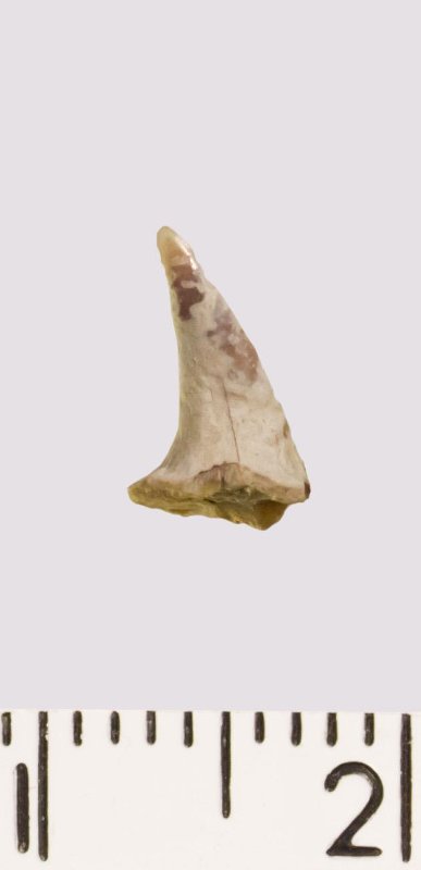 Зуб (фрагмент). Акула. Eostriatolamia venusta Leriche, 1906. Классификация: Хордовые Chordata, Позвоночные Vertebrata, Хрящевые рыбы Chondrichthyes, Пластиножаберные Elasmobranchii