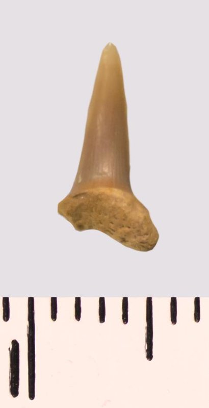Зуб (фрагмент). Акула. Eostriatolamia venusta Leriche, 1906. Классификация: Хордовые Chordata, Позвоночные Vertebrata, Хрящевые рыбы Chondrichthyes, Пластиножаберные Elasmobranchii
