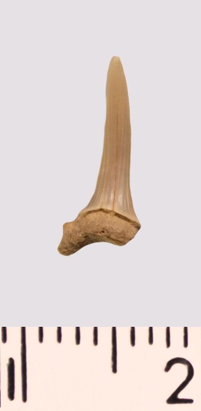 Зуб. Акула. Scapanorhynchus rhaphiodon Agassiz 1843. Классификация: Хордовые Chordata, Позвоночные Vertebrata, Хрящевые рыбы Chondrichthyes, Пластиножаберные Elasmobranchii