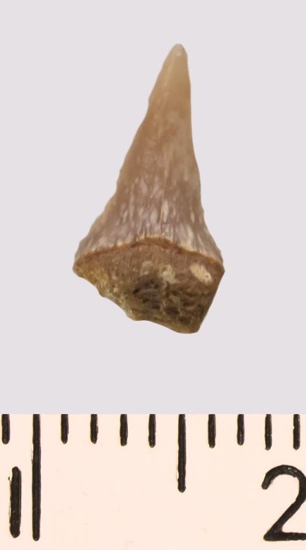 Зуб (фрагмент). Акула. Eostriatolamia venusta Leriche, 1906. Классификация: Хордовые Chordata, Позвоночные Vertebrata, Хрящевые рыбы Chondrichthyes, Пластиножаберные Elasmobranchii