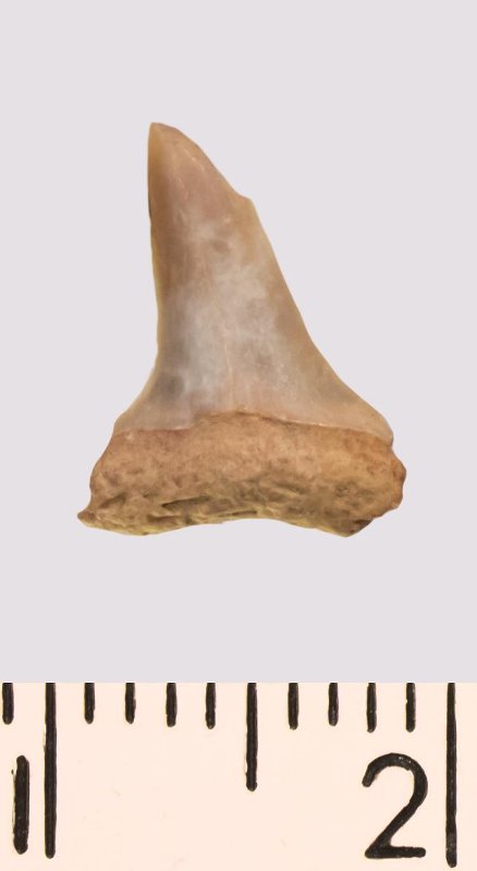 Зуб (фрагмент). Акула. Eostriatolamia venusta Leriche, 1906. Классификация: Хордовые Chordata, Позвоночные Vertebrata, Хрящевые рыбы Chondrichthyes, Пластиножаберные Elasmobranchii