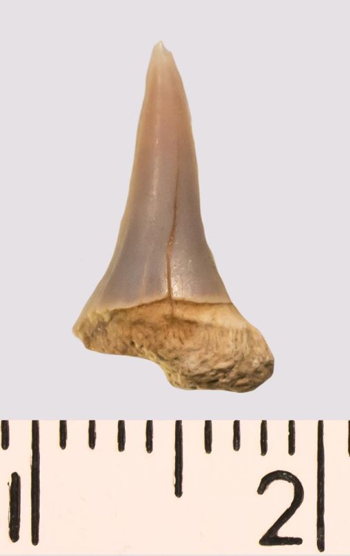 Зуб (фрагмент). Акула. Eostriatolamia venusta Leriche, 1906. Классификация: Хордовые Chordata, Позвоночные Vertebrata, Хрящевые рыбы Chondrichthyes, Пластиножаберные Elasmobranchii