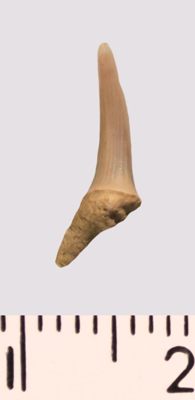 Зуб. Акула. Scapanorhynchus rhaphiodon Agassiz 1843. Классификация: Хордовые Chordata, Позвоночные Vertebrata, Хрящевые рыбы Chondrichthyes, Пластиножаберные Elasmobranchii