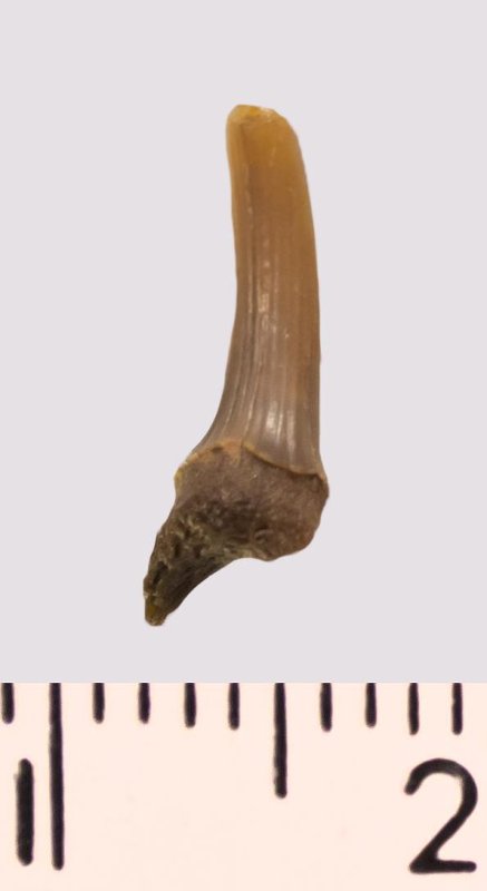 Зуб. Акула. Scapanorhynchus rhaphiodon Agassiz 1843. Классификация: Хордовые Chordata, Позвоночные Vertebrata, Хрящевые рыбы Chondrichthyes, Пластиножаберные Elasmobranchii