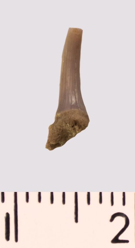 Зуб. Акула. Scapanorhynchus rhaphiodon Agassiz 1843. Классификация: Хордовые Chordata, Позвоночные Vertebrata, Хрящевые рыбы Chondrichthyes, Пластиножаберные Elasmobranchii