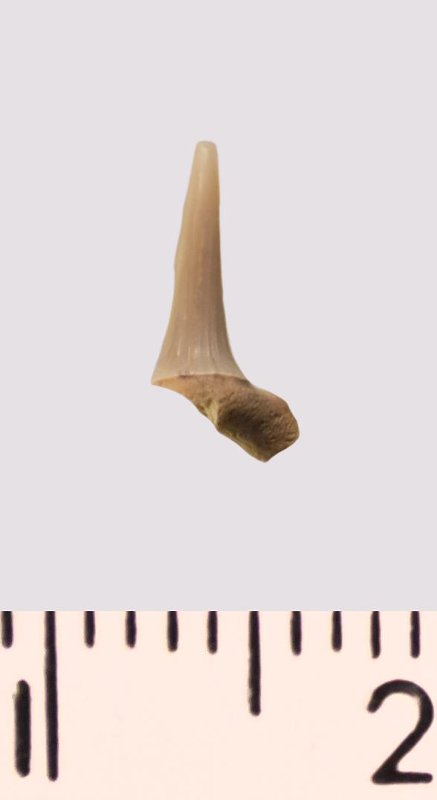 Зуб. Акула. Scapanorhynchus rhaphiodon Agassiz 1843. Классификация: Хордовые Chordata, Позвоночные Vertebrata, Хрящевые рыбы Chondrichthyes, Пластиножаберные Elasmobranchii