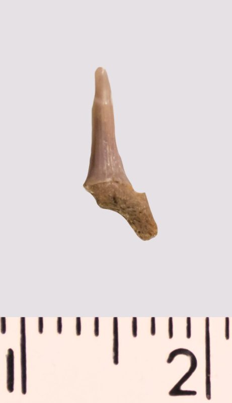 Зуб. Акула. Scapanorhynchus rhaphiodon Agassiz 1843. Классификация: Хордовые Chordata, Позвоночные Vertebrata, Хрящевые рыбы Chondrichthyes, Пластиножаберные Elasmobranchii