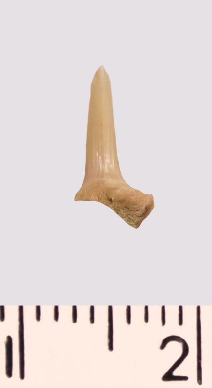 Зуб. Акула. Scapanorhynchus rhaphiodon Agassiz 1843. Классификация: Хордовые Chordata, Позвоночные Vertebrata, Хрящевые рыбы Chondrichthyes, Пластиножаберные Elasmobranchii