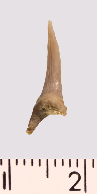 Зуб. Акула. Scapanorhynchus rhaphiodon Agassiz 1843. Классификация: Хордовые Chordata, Позвоночные Vertebrata, Хрящевые рыбы Chondrichthyes, Пластиножаберные Elasmobranchii