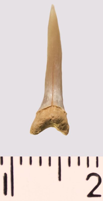 Зуб. Акула. Scapanorhynchus rhaphiodon Agassiz 1843. Классификация: Хордовые Chordata, Позвоночные Vertebrata, Хрящевые рыбы Chondrichthyes, Пластиножаберные Elasmobranchii