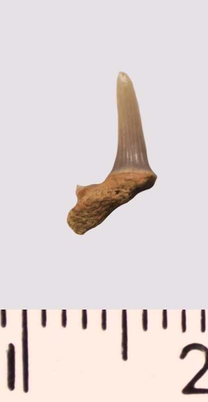Зуб. Акула. Scapanorhynchus rhaphiodon Agassiz 1843. Классификация: Хордовые Chordata, Позвоночные Vertebrata, Хрящевые рыбы Chondrichthyes, Пластиножаберные Elasmobranchii