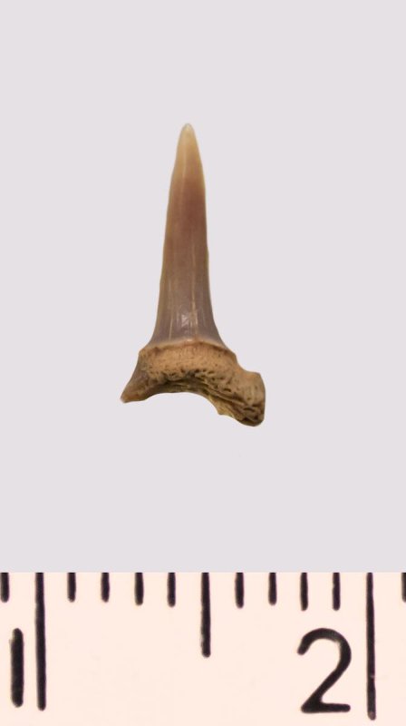 Зуб. Акула. Scapanorhynchus rhaphiodon Agassiz 1843. Классификация: Хордовые Chordata, Позвоночные Vertebrata, Хрящевые рыбы Chondrichthyes, Пластиножаберные Elasmobranchii