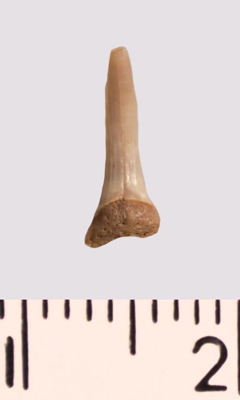 Зуб. Акула. Scapanorhynchus rhaphiodon Agassiz 1843. Классификация: Хордовые Chordata, Позвоночные Vertebrata, Хрящевые рыбы Chondrichthyes, Пластиножаберные Elasmobranchii