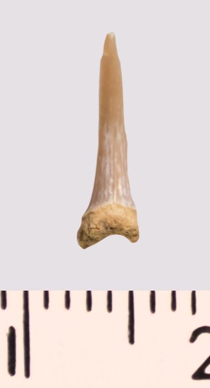 Зуб. Акула. Scapanorhynchus rhaphiodon Agassiz 1843. Классификация: Хордовые Chordata, Позвоночные Vertebrata, Хрящевые рыбы Chondrichthyes, Пластиножаберные Elasmobranchii