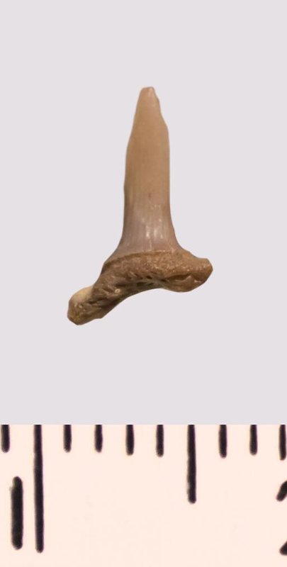 Зуб. Акула. Scapanorhynchus rhaphiodon Agassiz 1843. Классификация: Хордовые Chordata, Позвоночные Vertebrata, Хрящевые рыбы Chondrichthyes, Пластиножаберные Elasmobranchii