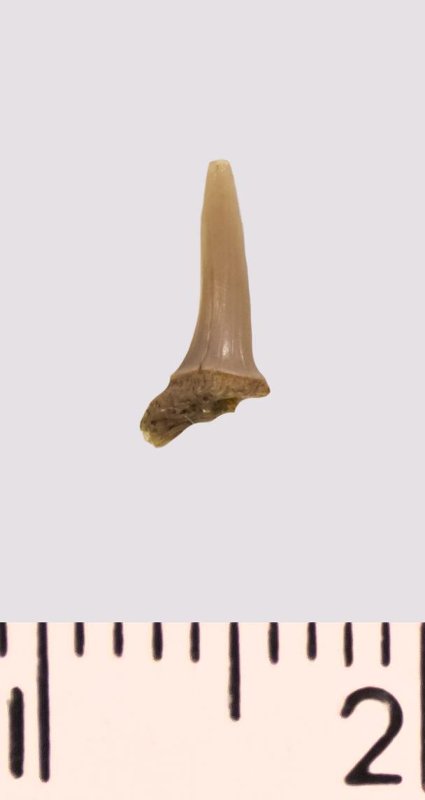 Зуб. Акула. Scapanorhynchus rhaphiodon Agassiz 1843. Классификация: Хордовые Chordata, Позвоночные Vertebrata, Хрящевые рыбы Chondrichthyes, Пластиножаберные Elasmobranchii