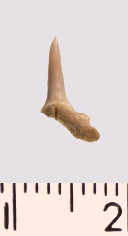 Зуб. Акула. Scapanorhynchus rhaphiodon Agassiz 1843. Классификация: Хордовые Chordata, Позвоночные Vertebrata, Хрящевые рыбы Chondrichthyes, Пластиножаберные Elasmobranchii