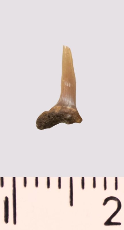 Зуб. Акула. Scapanorhynchus rhaphiodon Agassiz 1843. Классификация: Хордовые Chordata, Позвоночные Vertebrata, Хрящевые рыбы Chondrichthyes, Пластиножаберные Elasmobranchii