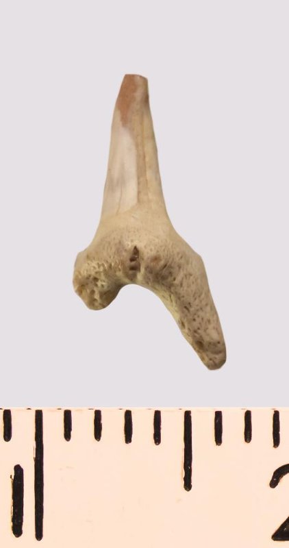Зуб. Акула. Scapanorhynchus rhaphiodon Agassiz 1843. Классификация: Хордовые Chordata, Позвоночные Vertebrata, Хрящевые рыбы Chondrichthyes, Пластиножаберные Elasmobranchii