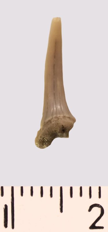 Зуб. Акула. Scapanorhynchus rhaphiodon Agassiz 1843. Классификация: Хордовые Chordata, Позвоночные Vertebrata, Хрящевые рыбы Chondrichthyes, Пластиножаберные Elasmobranchii
