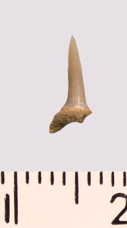 Зуб. Акула. Scapanorhynchus rhaphiodon Agassiz 1843. Классификация: Хордовые Chordata, Позвоночные Vertebrata, Хрящевые рыбы Chondrichthyes, Пластиножаберные Elasmobranchii
