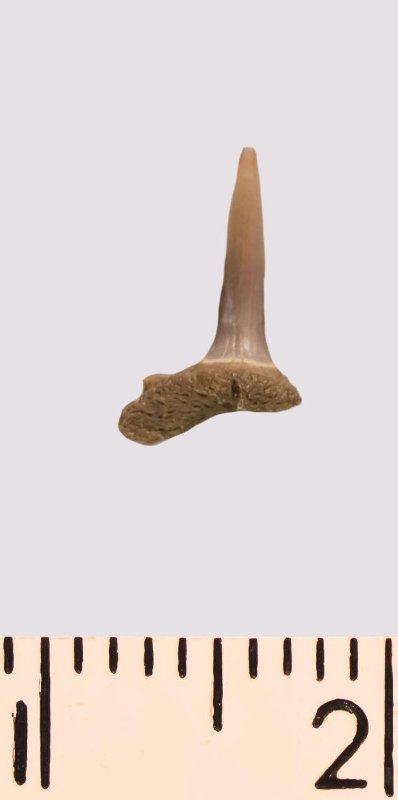 Зуб. Акула. Scapanorhynchus rhaphiodon Agassiz 1843. Классификация: Хордовые Chordata, Позвоночные Vertebrata, Хрящевые рыбы Chondrichthyes, Пластиножаберные Elasmobranchii