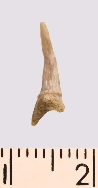 Зуб. Акула. Scapanorhynchus rhaphiodon Agassiz 1843. Классификация: Хордовые Chordata, Позвоночные Vertebrata, Хрящевые рыбы Chondrichthyes, Пластиножаберные Elasmobranchii