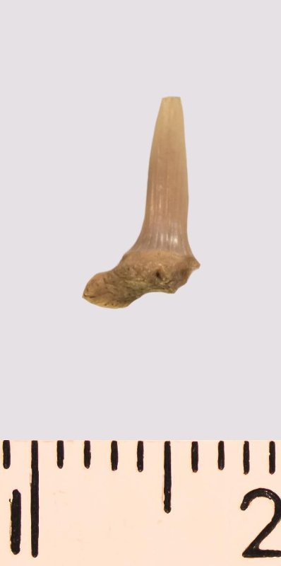 Зуб. Акула. Scapanorhynchus rhaphiodon Agassiz 1843. Классификация: Хордовые Chordata, Позвоночные Vertebrata, Хрящевые рыбы Chondrichthyes, Пластиножаберные Elasmobranchii