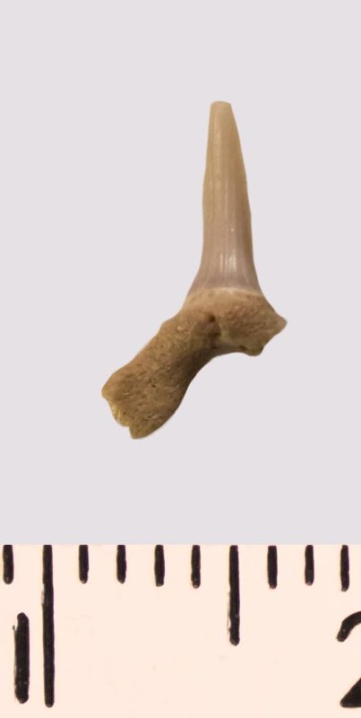 Зуб. Акула. Scapanorhynchus rhaphiodon Agassiz 1843. Классификация: Хордовые Chordata, Позвоночные Vertebrata, Хрящевые рыбы Chondrichthyes, Пластиножаберные Elasmobranchii