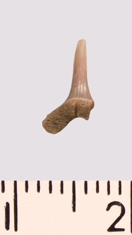 Зуб. Акула. Scapanorhynchus rhaphiodon Agassiz 1843. Классификация: Хордовые Chordata, Позвоночные Vertebrata, Хрящевые рыбы Chondrichthyes, Пластиножаберные Elasmobranchii