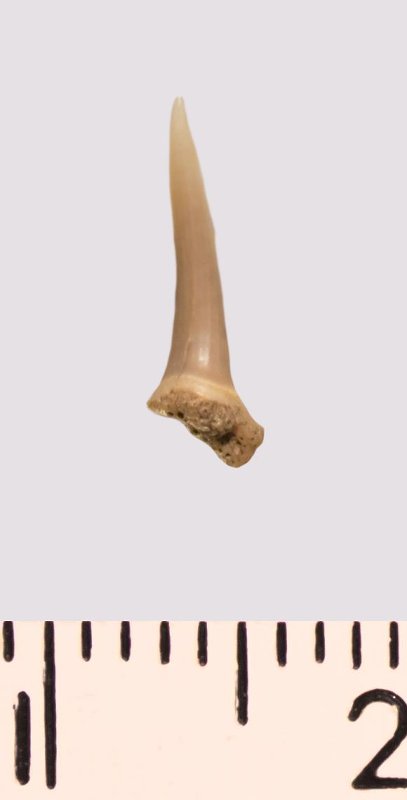 Зуб. Акула. Scapanorhynchus rhaphiodon Agassiz 1843. Классификация: Хордовые Chordata, Позвоночные Vertebrata, Хрящевые рыбы Chondrichthyes, Пластиножаберные Elasmobranchii