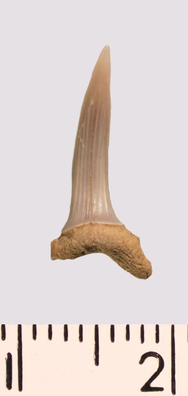 Зуб. Акула. Scapanorhynchus rhaphiodon Agassiz 1843. Классификация: Хордовые Chordata, Позвоночные Vertebrata, Хрящевые рыбы Chondrichthyes, Пластиножаберные Elasmobranchii