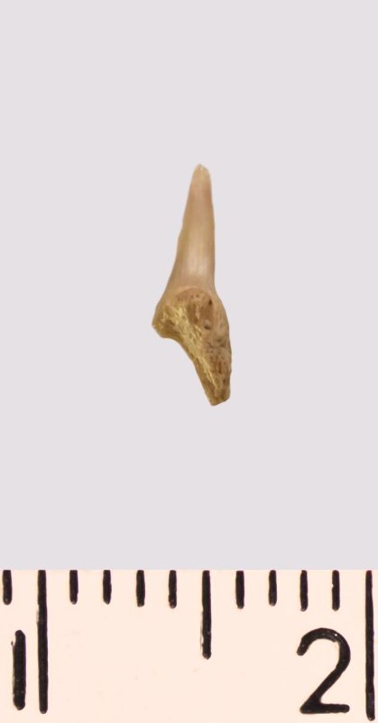 Зуб. Акула. Scapanorhynchus rhaphiodon Agassiz 1843. Классификация: Хордовые Chordata, Позвоночные Vertebrata, Хрящевые рыбы Chondrichthyes, Пластиножаберные Elasmobranchii