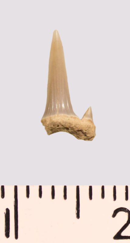 Зуб. Акула. Scapanorhynchus rhaphiodon Agassiz 1843. Классификация: Хордовые Chordata, Позвоночные Vertebrata, Хрящевые рыбы Chondrichthyes, Пластиножаберные Elasmobranchii