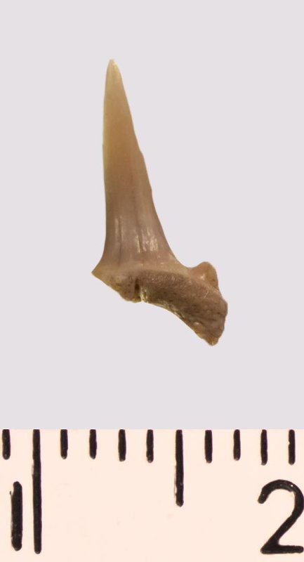 Зуб. Акула. Scapanorhynchus rhaphiodon Agassiz 1843. Классификация: Хордовые Chordata, Позвоночные Vertebrata, Хрящевые рыбы Chondrichthyes, Пластиножаберные Elasmobranchii