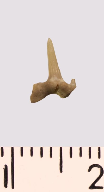 Зуб. Акула. Scapanorhynchus rhaphiodon Agassiz 1843. Классификация: Хордовые Chordata, Позвоночные Vertebrata, Хрящевые рыбы Chondrichthyes, Пластиножаберные Elasmobranchii