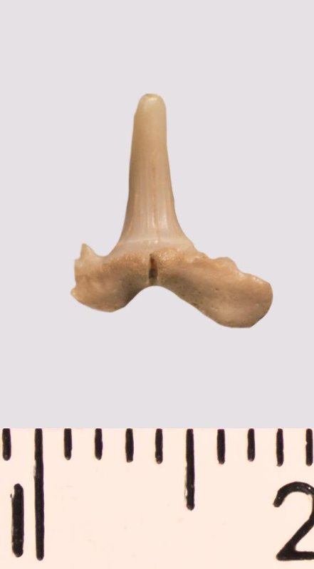 Зуб. Акула. Scapanorhynchus rhaphiodon Agassiz 1843. Классификация: Хордовые Chordata, Позвоночные Vertebrata, Хрящевые рыбы Chondrichthyes, Пластиножаберные Elasmobranchii