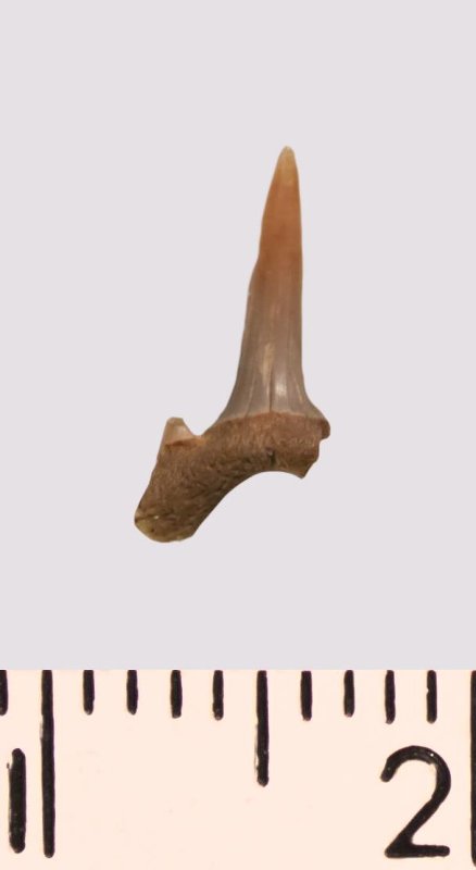 Зуб. Акула. Scapanorhynchus rhaphiodon Agassiz 1843. Классификация: Хордовые Chordata, Позвоночные Vertebrata, Хрящевые рыбы Chondrichthyes, Пластиножаберные Elasmobranchii