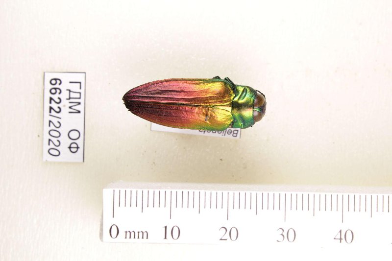 Сухое насекомое. Златка. Belionota sumptuosa Gory et Laporte, 1838. Классификация: Членистоногие Arthropoda, Насекомые Insecta, Жуки Coleoptera, Златки Buprestidae