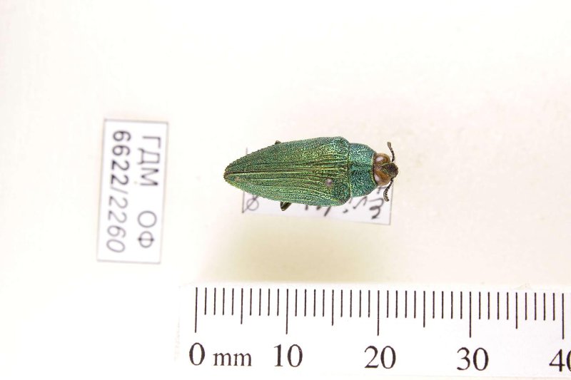 Сухое насекомое. Златка. Evides triangularis Thomson, 1878. Классификация: Членистоногие Arthropoda, Насекомые Insecta, Жуки Coleoptera, Златки Buprestidae