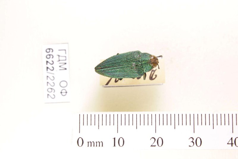 Сухое насекомое. Златка. Evides triangularis Thomson, 1878. Классификация: Членистоногие Arthropoda, Насекомые Insecta, Жуки Coleoptera, Златки Buprestidae
