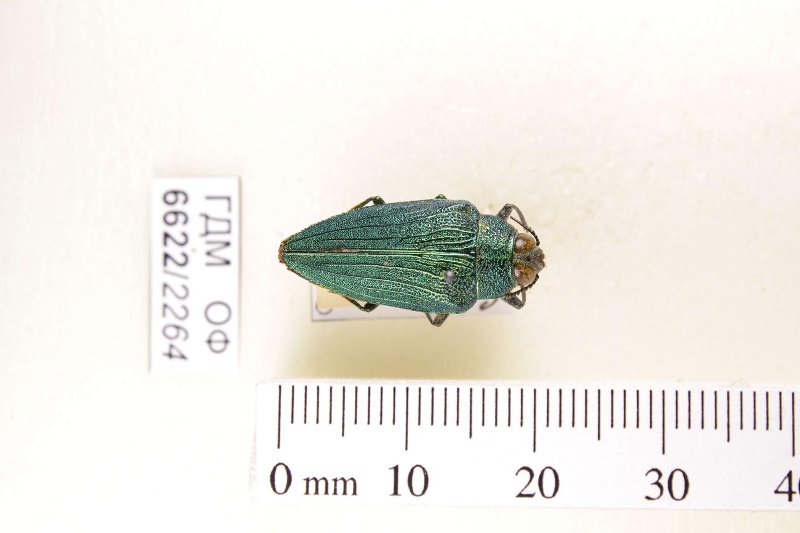 Сухое насекомое. Златка. Evides triangularis Thomson, 1878. Классификация: Членистоногие Arthropoda, Насекомые Insecta, Жуки Coleoptera, Златки Buprestidae