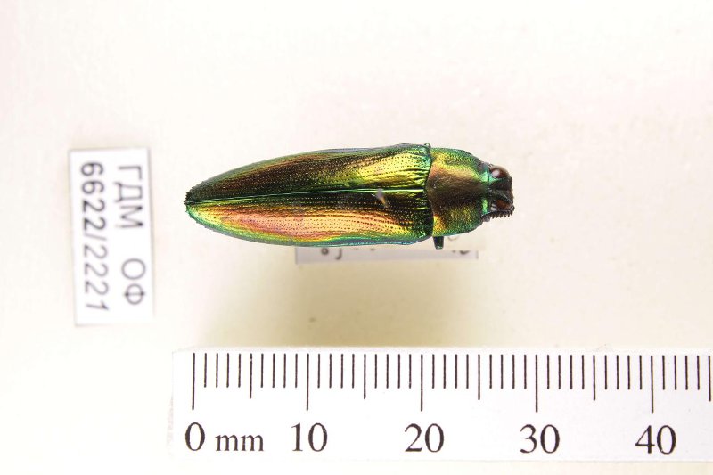 Сухое насекомое. Златка. Chrysaspis elongata (Olivier, 1790). Классификация: Членистоногие Arthropoda, Насекомые Insecta, Жуки Coleoptera, Златки Buprestidae