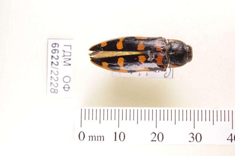 Сухое насекомое. Златка. Cyrioides imperialis (Fabricius, 1801). Классификация: Членистоногие Arthropoda, Насекомые Insecta, Жуки Coleoptera, Златки Buprestidae