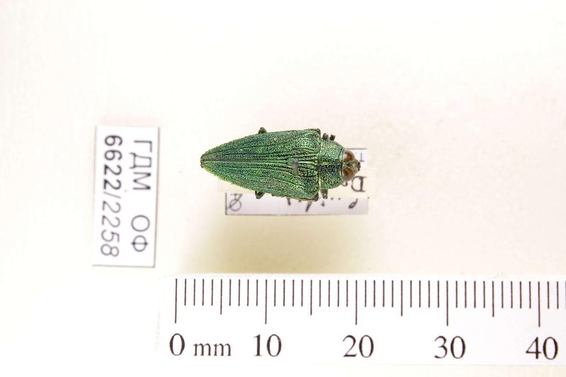 Сухое насекомое. Златка. Evides triangularis Thomson, 1878. Классификация: Членистоногие Arthropoda, Насекомые Insecta, Жуки Coleoptera, Златки Buprestidae