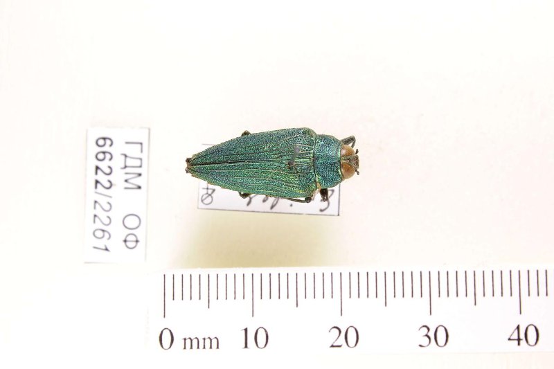 Сухое насекомое. Златка. Evides triangularis Thomson, 1878. Классификация: Членистоногие Arthropoda, Насекомые Insecta, Жуки Coleoptera, Златки Buprestidae