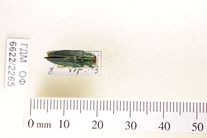 Сухое насекомое. Златка. Evides intermedia Saunders, 1874. Классификация: Членистоногие Arthropoda, Насекомые Insecta, Жуки Coleoptera, Златки Buprestidae
