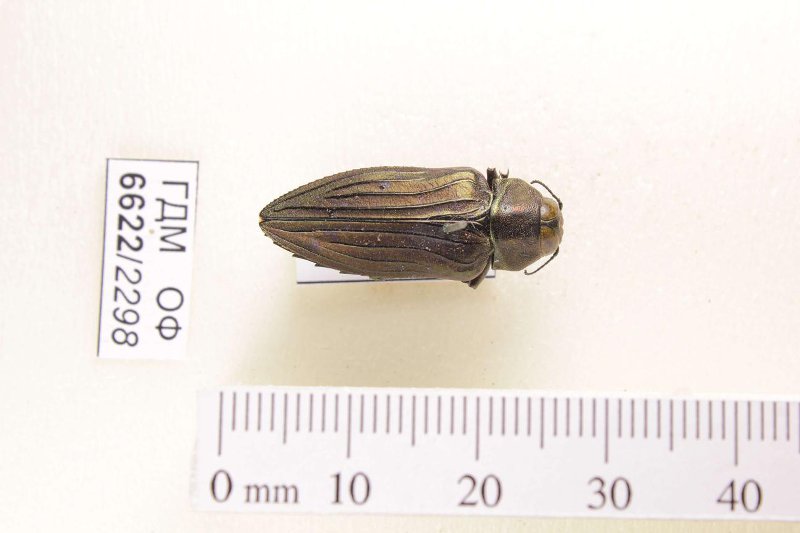 Сухое насекомое. Златка. Actenodes chalybaeitarsis (Chevrolat, 1834). Классификация: Членистоногие Arthropoda, Насекомые Insecta, Жуки Coleoptera, Златки Buprestidae