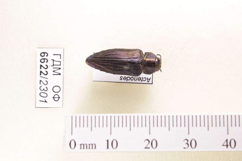 Сухое насекомое. Златка. Actenodes chalybaeitarsis (Chevrolat, 1834). Классификация: Членистоногие Arthropoda, Насекомые Insecta, Жуки Coleoptera, Златки Buprestidae